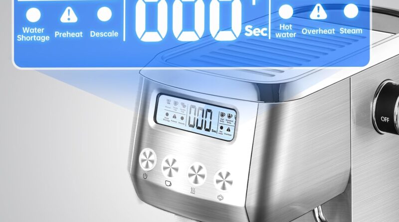 Discover more about the AMZCHEF 1350W Macchina da Caffè Espresso Manuale e Cappuccino, 20 Bar Macchina Caffè Polvere con Serbatoio Estraibile 1,3L, Pannello LCD, Portafiltro 2 in 1 [Classe di efficienza energetica A+++].